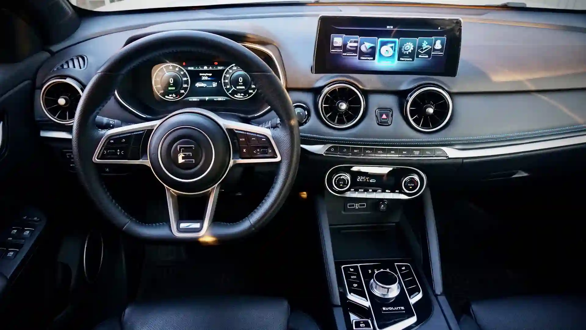 Сажусь за руль EVOLUTE i‑JOY. Деловито осматриваюсь и завожу беседу с представителем бренда. Как бывалый электровод (шутка ли, за плечами опыт целой недели езды на электромобиле) интересуюсь расходом, сетую на неудобства зарядной инфраструктуры. В общем, слегка выпендриваюсь.